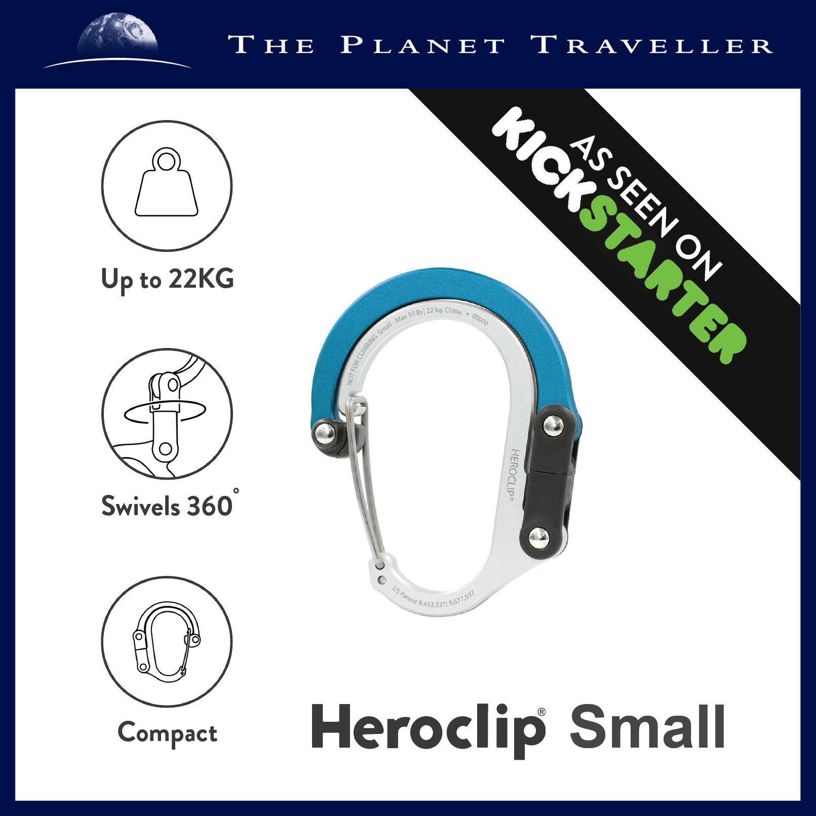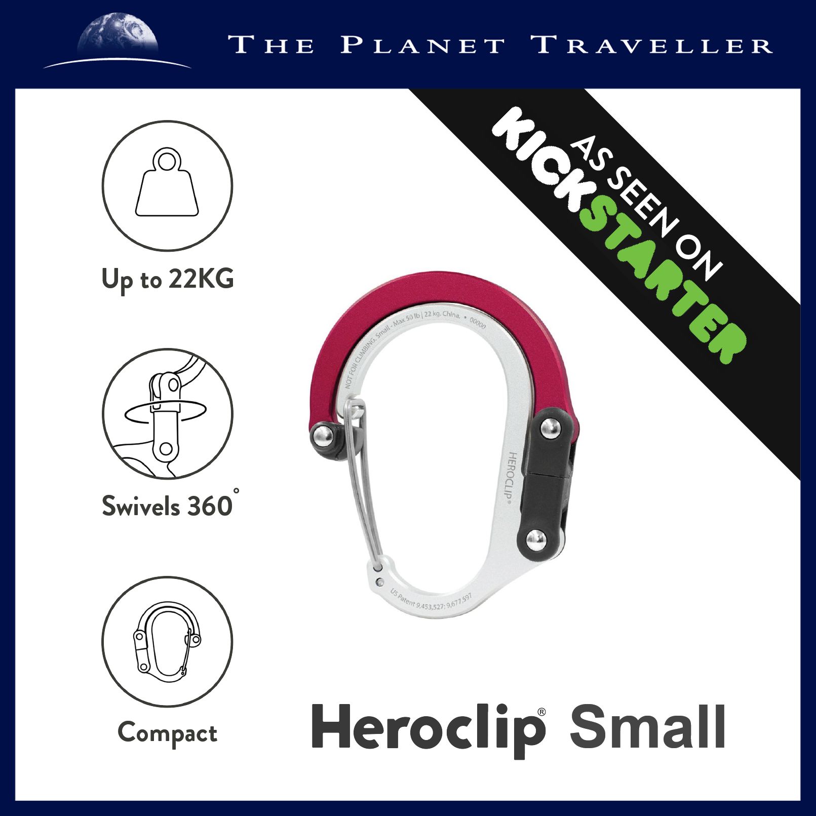 Perfect for midsize items you encounter every day, Heroclip Small gear clip lets you hook and hang commuter bags and backpacks from shelves, counters, tables, chairs or even doors. They're also great for hanging gravity filters from tree branches, tools from a ladders, or carry-on bags from roller suitcase handles. This versatile gear clip hangs securely, rotates 360 degrees, and folds compactly in ways other carabiners, clips and hooks can't, helping you keep your gear organized and exactly where you want it, no matter the activity. The clip also features a wider clip gate compared to standard carabiners and hooks, and a hook with a grippy rubber tip for hanging things from flat surfaces.