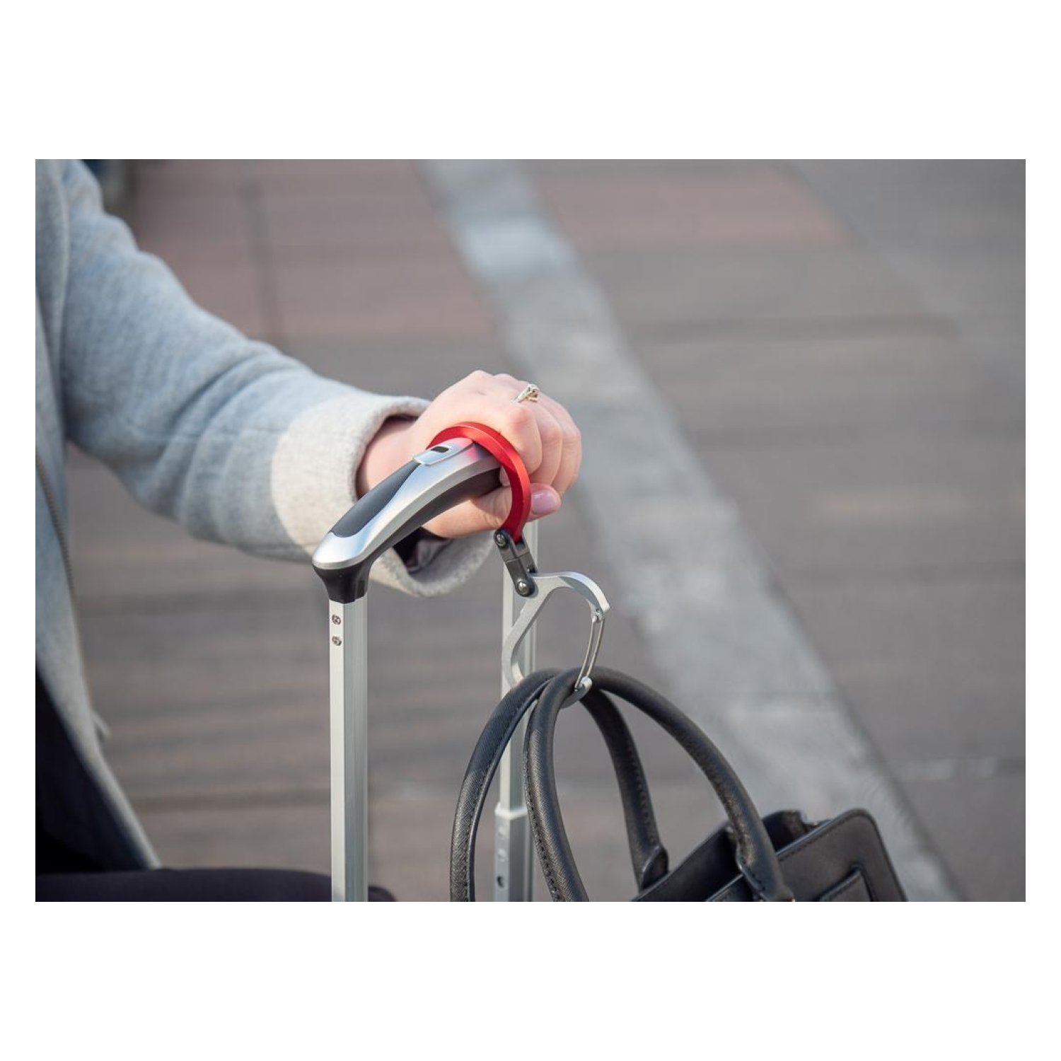 Keep your bags off the dirty floor! In 5 seconds, the Heroclip transforms into a rubber-edged hook for your bag, and packs neatly into a carabiner after.