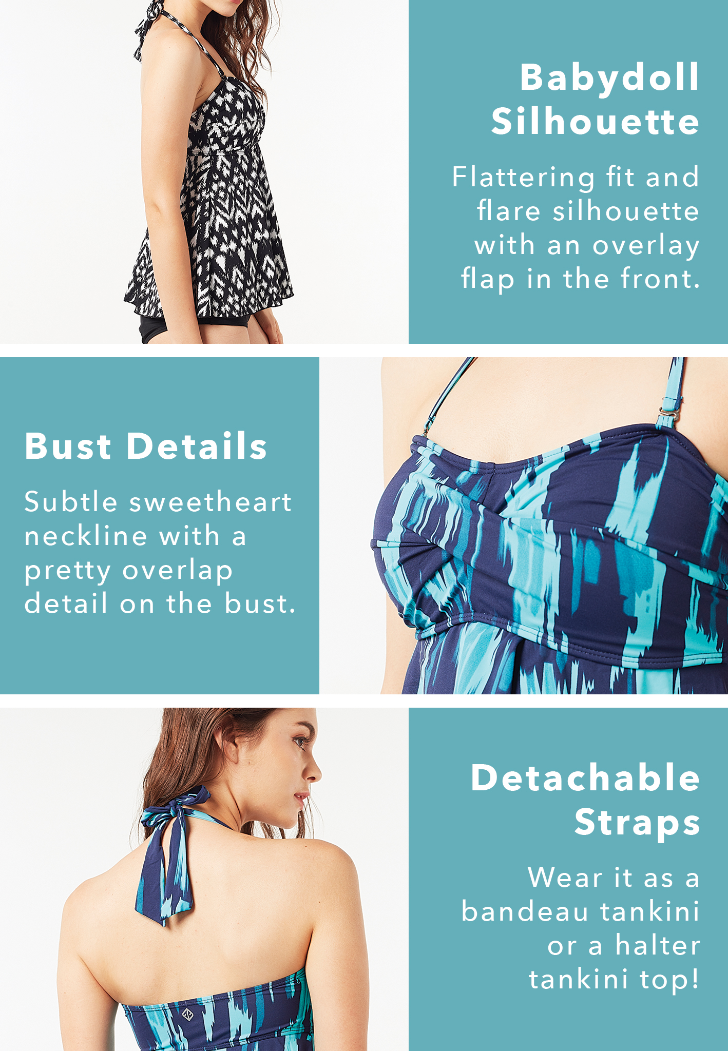 Made in our creamy soft special blend of spandex and nylon, this tankini top is suitable even for pregnant ladies. Featuring a trendy look, it's a flattering piece that doesn't show too much skin.