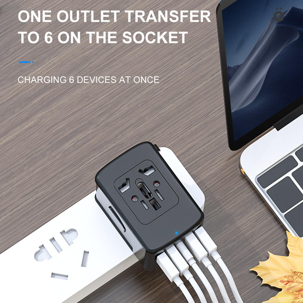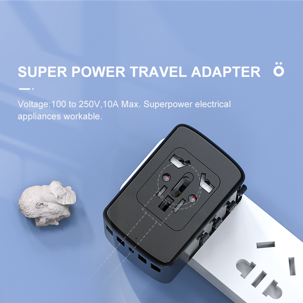 Travel Essential: Built in with US/UK/AU/EU adapter Plug types supports Socket outlet in North America, United Kingdom, Continental European, Australia, Japan, Iceland, India, Ireland, Thailand , South Korea, China etc, more than 150 countries all over the world.