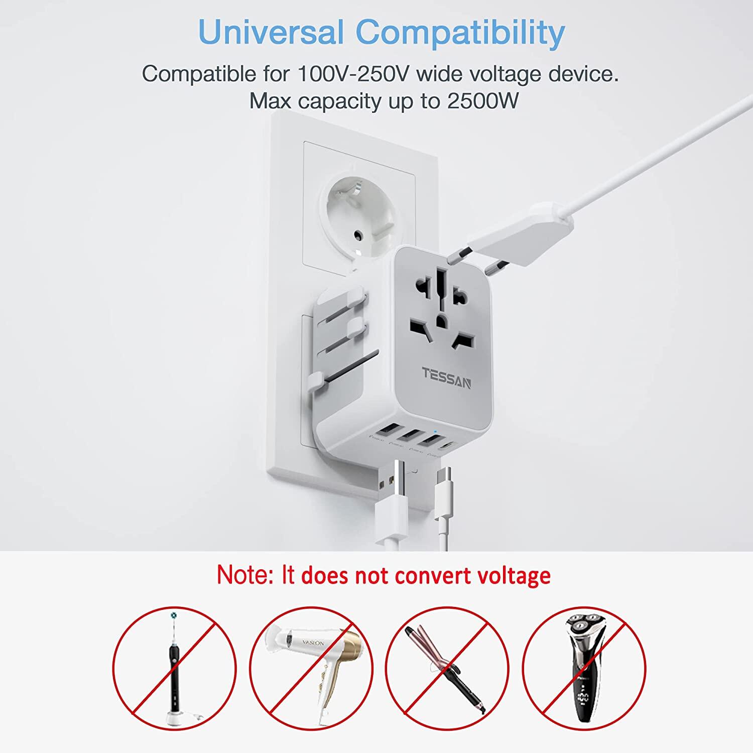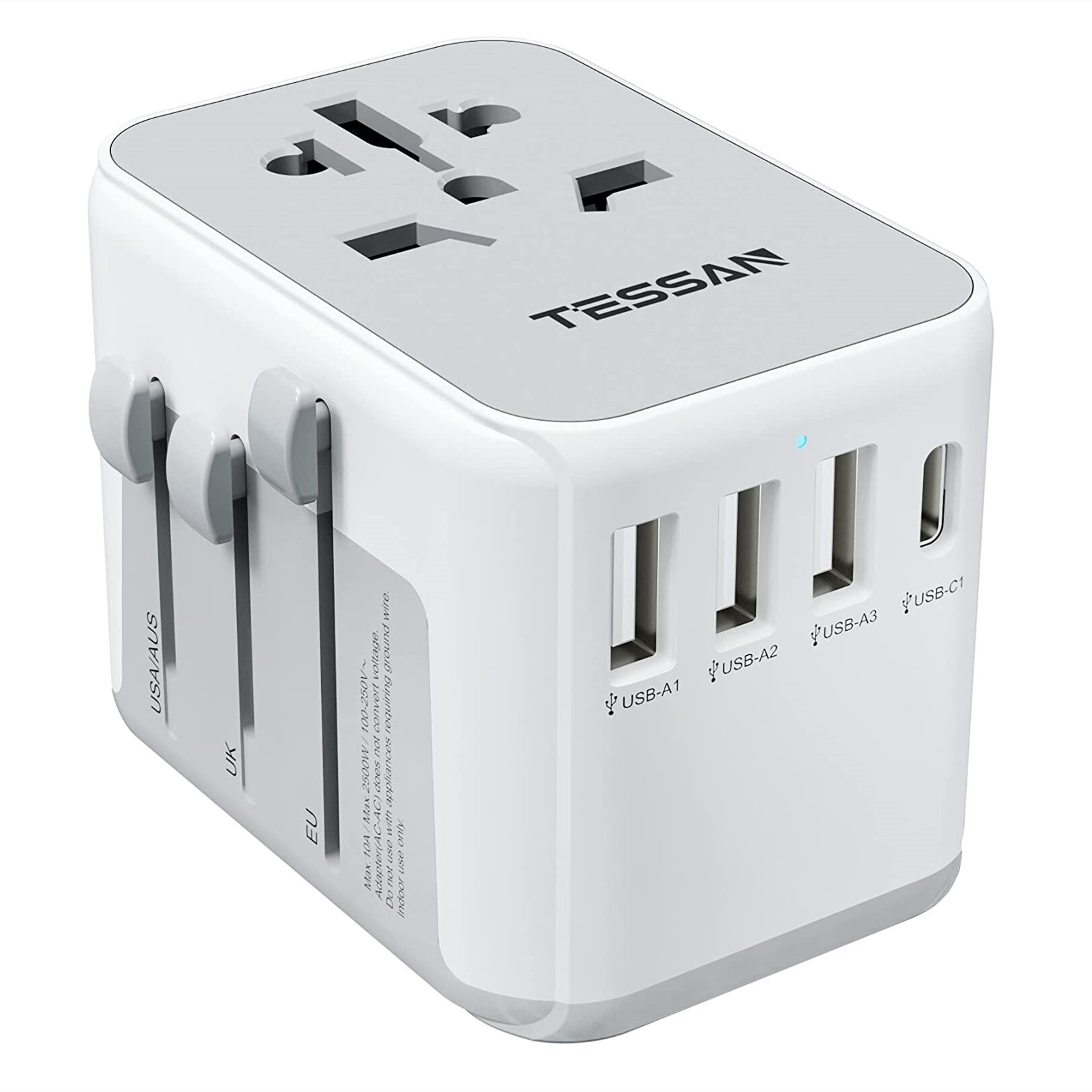Type C Universal Travel Adapter All-in-one Travel Charger with 4 USB Ports (1 USB C),TESSAN Universal Adapter Plug International Travel Adapor Power Socket Worldwide USB Charger Universal Socket for U