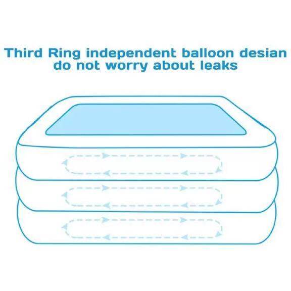 Product description:This product is suitable for new born and above, it is made off eco-friendly material.This product is adjustable, the user is able to adjust the height freely.This pool is design with safety valve so that it can be easy to inflate and deflate.The thickness matching for this swimming pool is the same as the thickness.After water is fill into it, the shape of the swimming pool will remain unchanged.This swimming pool is tough and durable, it is also cannot cut by a real knife.It is also built with three big valve so that user can adjust the height of the swimming pool by themselves.The fall point built on the bottom of the swimming pool can easily release water out of the swimming pool.Three layer design of this product is to prevent it from break and leakage.The water line inside the swimming pool have a top water line so that user can estimate the water level they want.Product features:External dimensions:- (L)150x(W) 110X (H)50cm (3kg)- (L)210 x (W)140 x (h) 65cm (5kg)- (L)262x(W)175x(H)60cm (6kg)- (L)305x(W)183x(H)60cm (8.2kg)-Multi purposes-showering, swimming, playing.-Eco friendly material-Thick, durable, & comfortable-Easy to carry & Store-Multi layer structure and valves-Material: eco-friendly PVCHow to play:-Guide your baby/kids to showering, swimming or playing inside this swimming pool-Firstly, use the electric pump to inflate the swimming pool.-User can adjust the height of the swimming pool when inflated according to their children height.-After user finish playing or swimming with their children, simply open the fall hole built below the swimming pool to easily send the water out of the swimming pool.Recommended for baby/kids. Adult supervision is need:** Suitable for how many people?1)(L)150x(W) 110X (H)50cm : 2-3 people2)(L) 210X (W)140x(H)65cm : 3-5 people3)(L) 260X (W) 170X (H)61cm : 5 -7 people4)(L)305x(W)180x(H)60cm : 7 - 8 people* Note:1. there will be 5-8cm differ due to manually measurement.2. color will be slightly differ due to different monitors or mobile screen showed.Parcel included:1PCs X swimming pool1PCs x electric pump (if selected pump)