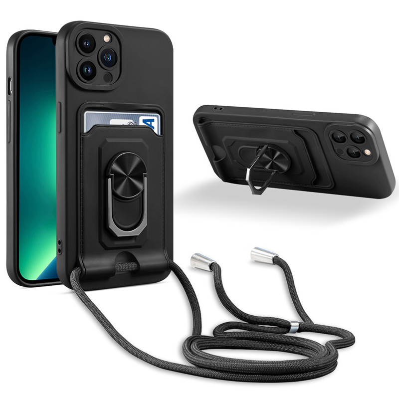 For Apple iPhone 15 14 13 11 12 Pro Max Plus mini Phone Case, Crossbody Necklace Strap Lanyard Magnetic Ring Card Slots Holder Cover