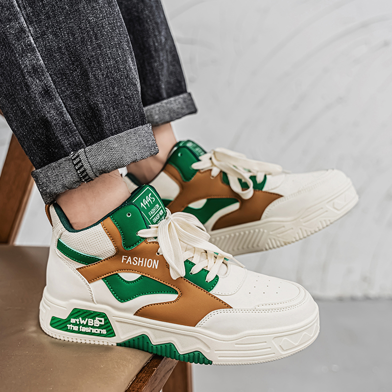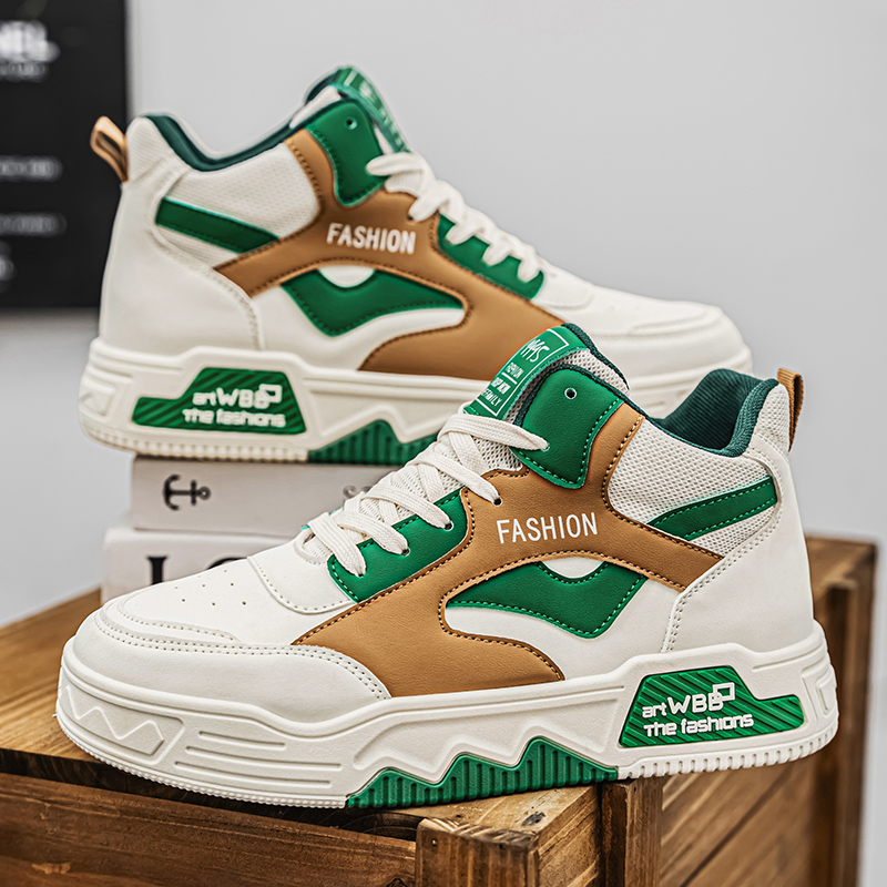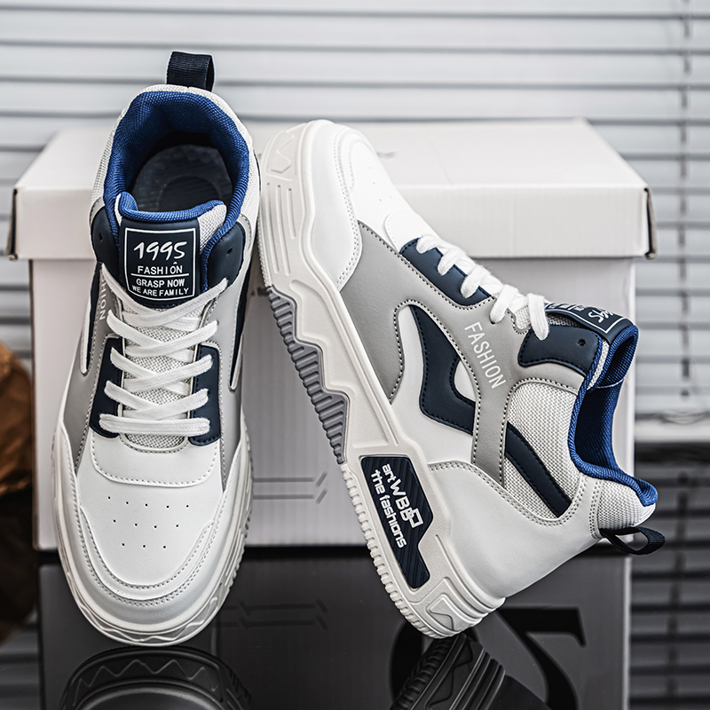 【READY STOCK】Men's high top sports shoes, outdoor casual board shoes, thick soled lightweight sports shoes, round toe lace up running shoes.