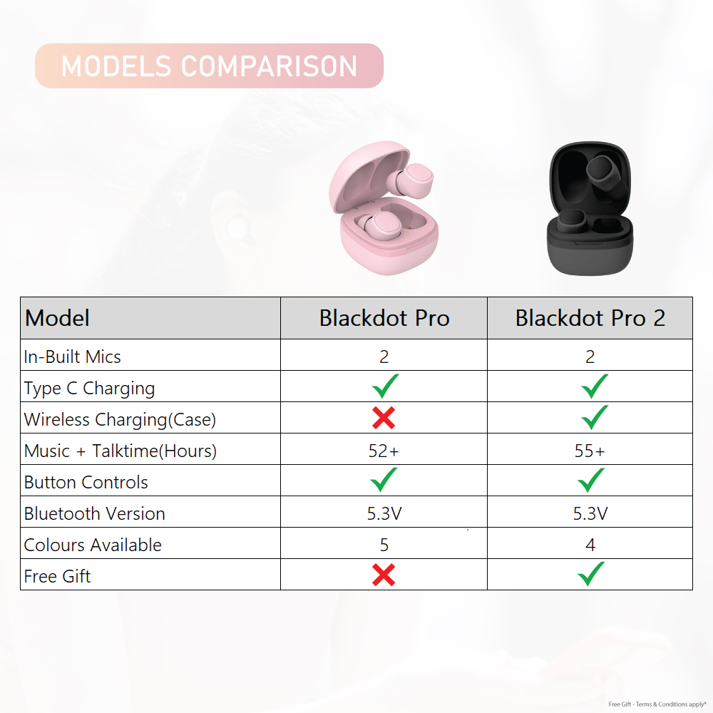 Blackdot Pro Wireless Earbuds can both answer phone calls. They can be used in dual or separate modes. Easy to share the same music/movies with friends.