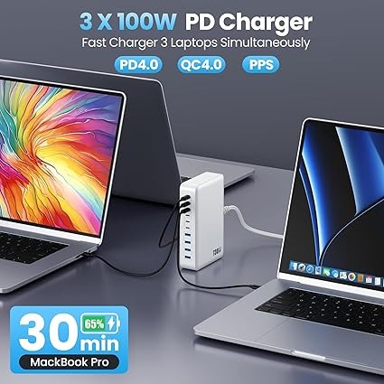 • 【Charger 3 Laptops Simultaneously】With the inspiring 3 PD 100W outputs, Ekrist's USB-C charger block can super-fast charge 3 laptop simultaneously. Unlike most chargers with false advertising and outputs that slow down when multiple ports are used, upgraded 100w laptop power more up to 3× faster than with an old 65w laptop charger.