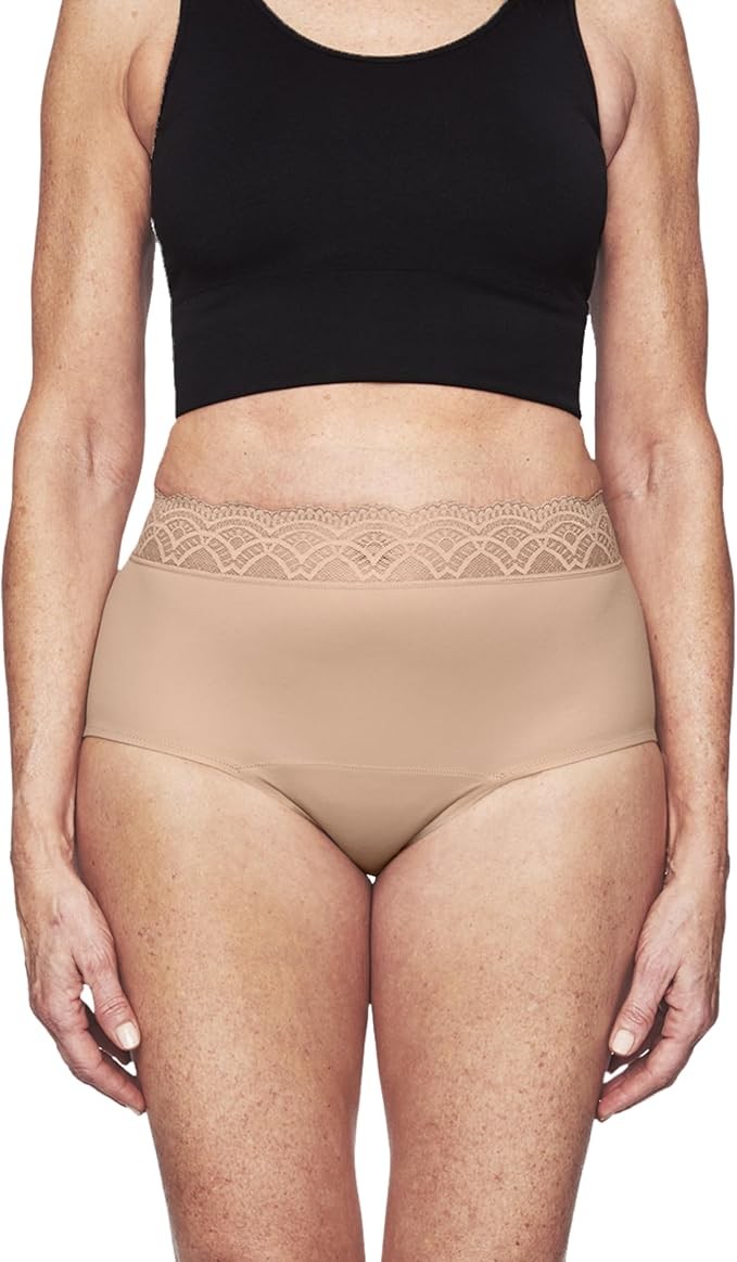 High-Waisted Underwear, Holds 100ml or 6 Tablespoons or 1/4 Cup of Fluid*, Lightweight Absorbent Incontinence Underwear, FSA/HSA-Approved Feminine Care, Beige
